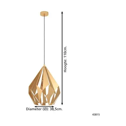 Beschrijving Eglo Hanglamp Carlton Staal Goud | IP20 - Geschikt voor 1x E27