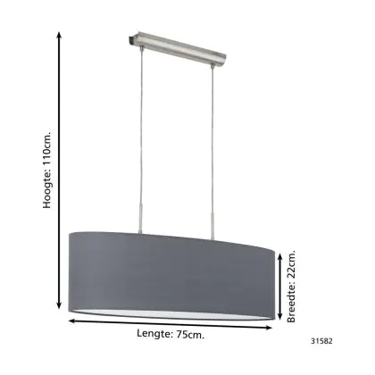 Beschrijving Eglo Hanglamp Pasteri Staal Satijn Nikkel | IP20 - Geschikt voor 2x E27