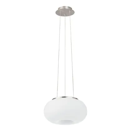 Beschrijving Eglo Pendelarmatuur Optica Staal Satijn Nikkel | Geschikt voor 2x E27