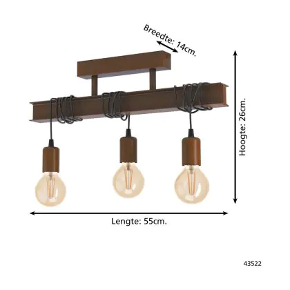 Beschrijving Eglo Plafondlamp Townshend 4 Staal Bruin | IP20 - Geschikt voor 3x E27