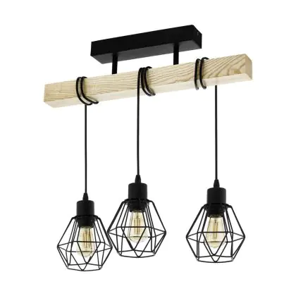 Beschrijving Eglo Plafondlamp Townshend 5 Staal Hout Zwart | IP20 - Geschikt voor 3x E27