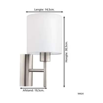 Beschrijving Eglo Wandlamp Pasteri Staal Satijn Nikkel | IP20 - Geschikt voor 1x E27