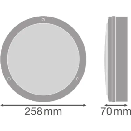 Beschrijving Ledvance LED Bulkhead Surface 250 Wit 10W 800lm - 830 Warm Wit | 250mm - IP65 - 3 uur Noodverlichting