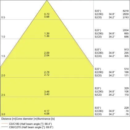 De lichtopbrengst (Lumen), geeft weer hoe krachtig het uitgestraalde licht is. Dit is belangrijk om te weten om de juiste sfeer te creëren. 0 tot 400 Lumen is bij uitstek geschikt voor accent- of sfeerverlichting. Een hoger aantal Lumen is, afhankelijk van de grootte van de ruimte, beter geschikt als ondersteunende- of basisverlichting. Heb je plafonds hoger dan 4 meter, dan is een lichtopbrengst van minimaal 8000lm aan te raden indien heldere verliching gewenst is (vb. in werkomgevingen).