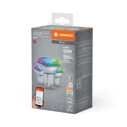 Beschrijving Ledvance Smart+ Wifi GU10 Spot 5W 350lm 45D - 827-865 Afstembaar Wit | RGBW - Dimbaar - Vervangt 50W