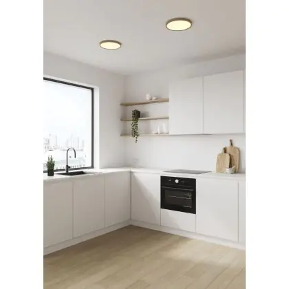 Beschrijving Nordlux LED Plafondlamp Oja 29 Hout 18W 1600lm - 827 Zeer Warm Wit | 3-Staps Dimbaar