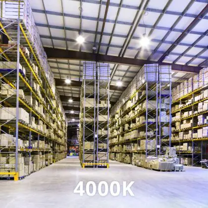 Deze LED High-bay bezit een enorme lichtopbrengst van 18000 lumen! Dit hoge aantal laat zien dat een armatuur zoals deze ook vanaf een grote hoogte nog steeds zijn werk doet. Hang je een High-bay armatuur zoals deze in een ruimte met lagere plafonds, dan is de hoeveelheid licht simpelweg te krachtig en te fel. Met als gevolg dat wanneer mensen in het licht kijken, ze direct worden verblind. Vanaf hoge plafonds (6 tot 14 meter) is dat een ander verhaal. Ook niet onbelangrijk om op te letten is de kleurtemperatuur. Deze is bij dit product: 4000K - Koel Wit. Twijfel je over de juiste kleurtemperatuur voor een grote oppervlakte? Kies dan voor koel wit (4000K). Deze lichtkleur heeft een natuurlijke tint en houdt werknemers in productie-omgevingen alert.