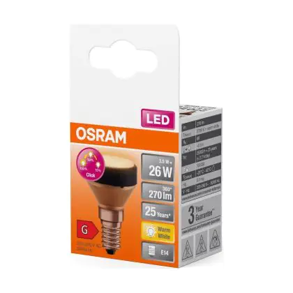 Beschrijving Osram LED Plat Lamp E14 Special Mat 3.5W 270lm - 827 Zeer Warm Wit | 3-Staps Dimbaar - Vervangt 25W