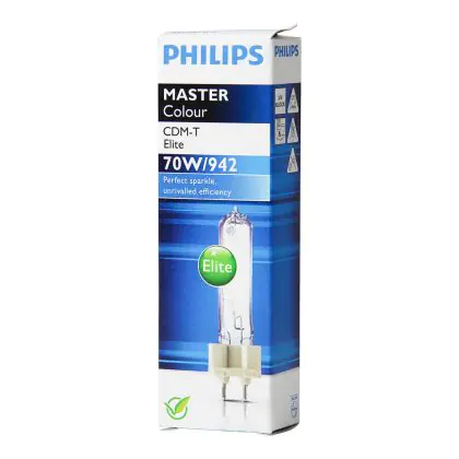 De Philips CDM-T Elite is de perfecte lamp voor het verlichten van objecten in winkels, supermarkten en meubelzaken. Het vervangt uw huidige lampen van 70W. Met een levensduur van gemiddeld 15000 uur en uitgaande van 8 branduren per dag gaat deze lamp gemiddeld 9 jaar mee. De lamp komt in de kleur 4200K - koud wit, de lamp kan dus ook prim gebruikt worden voor verlichting op kantoor. Maar waarin onderscheid de Philips CDM-T Elite zich van de normale CDM-T: