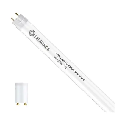 Beschrijving Voordeelpak 10x Ledvance LED Buis T8 Value (EM/Mains) Standard Output 7W 765lm - 830 Warm Wit | 72cm - Vervangt 16W