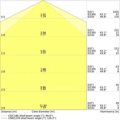 ![]() De kleurcode is een combinatie van de kleurweergave (CRI) en lichtkleur (Kelvin). Het eerste getal is de kleurweergave (1 = zeer slechte kleurweergave, 9 = maximale kleurechtheid). Het tweede en derde cijfer betreft de lichtkleur. Een lamp met kleurcode 830 heeft bijvoorbeeld een goede kleurweergave en straalt een warm wit licht uit (3000K), waar een lamp met de kleurcode 940 een uitstekende CRI heeft en een koel wit licht (4000K) uitstraalt. |