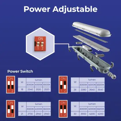 Beschrijving Voordeelpak 12x Noxion LED Waterdichte Montagebalk Poseidon V3.0 18-30W 2340-4200lm - 830-865 CCT | 120cm - Doorvoerbedrading (5x2.5mm2)